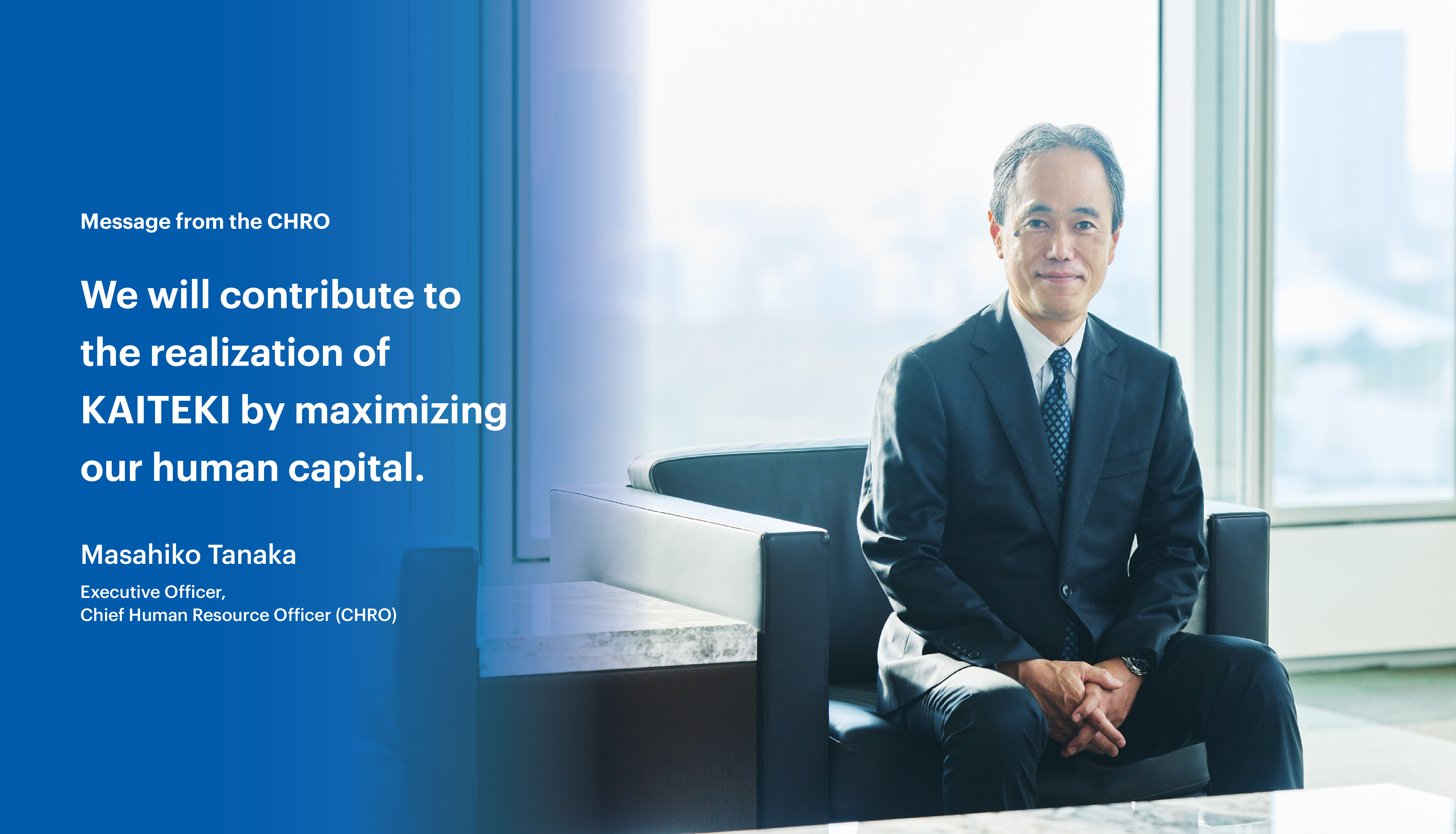 We are currently in an operating environment characterized by volatility, uncertainty, complexity, and ambiguity, which is why we embrace KAITEKI, our guiding Purpose, as the North Star for our aspirations. As the chief human resource officer (CHRO), my primary responsibility is achieving our Purpose by maximizing our human capital and making the best use of its power as a driving force.