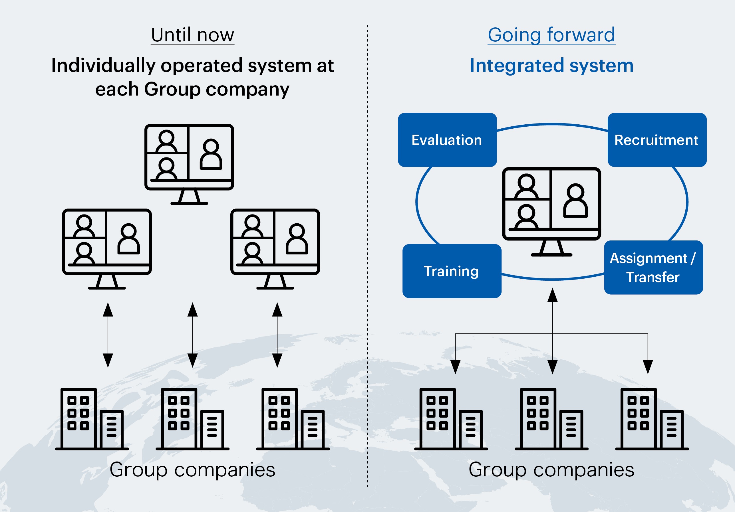 In fiscal 2024, we began operating a new human resource platform that centrally manages information on Group employees, organizations, positions, and duties. This system allows us to visualize human resource information from across the globe, assign the right people to the right positions, and realize more sophisticated development and management of human resources. In addition, by using this system to standardize business processes, we will enhance the quality and efficiency of our human resource operations and services and increase business profitability and employee engagement.
