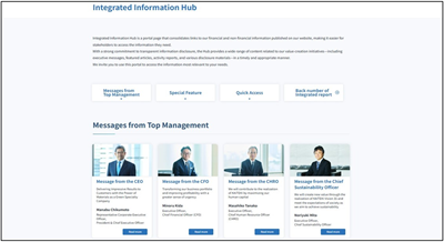 Through this transition, we will provide a diverse range of information related to our value creation — including messages from management, feature articles, and various disclosure materials — at appropriate times. In conjunction with this shift, we have launched the Integrated Information Hub, a portal page that consolidates links to financial and non-financial information available on our website. We invite you to use this page to easily find and access the information you need.