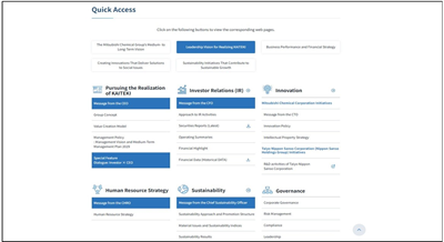 Mitsubishi Chemical Group has provided a wide range of financial and non-financial information through the publication of our integrated report, KAITEKI Report. Going forward, we will discontinue its annual publication and transition to a web-based platform to deliver information in a more timely and accessible manner.