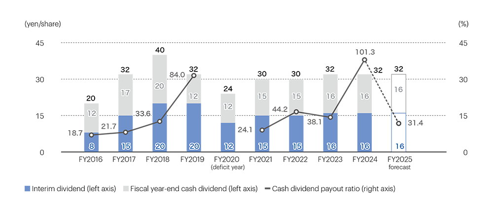 In fiscal 2025, we expect net income attributable to owners of the parent to amount to ¥145.0 billion. While this should lead to a dividend payout ratio of 31.4%, we believe the figures are in line with our shareholder return policy, given that fiscal 2025 profits include a one-time gain on the transfer of the Pharma Business.