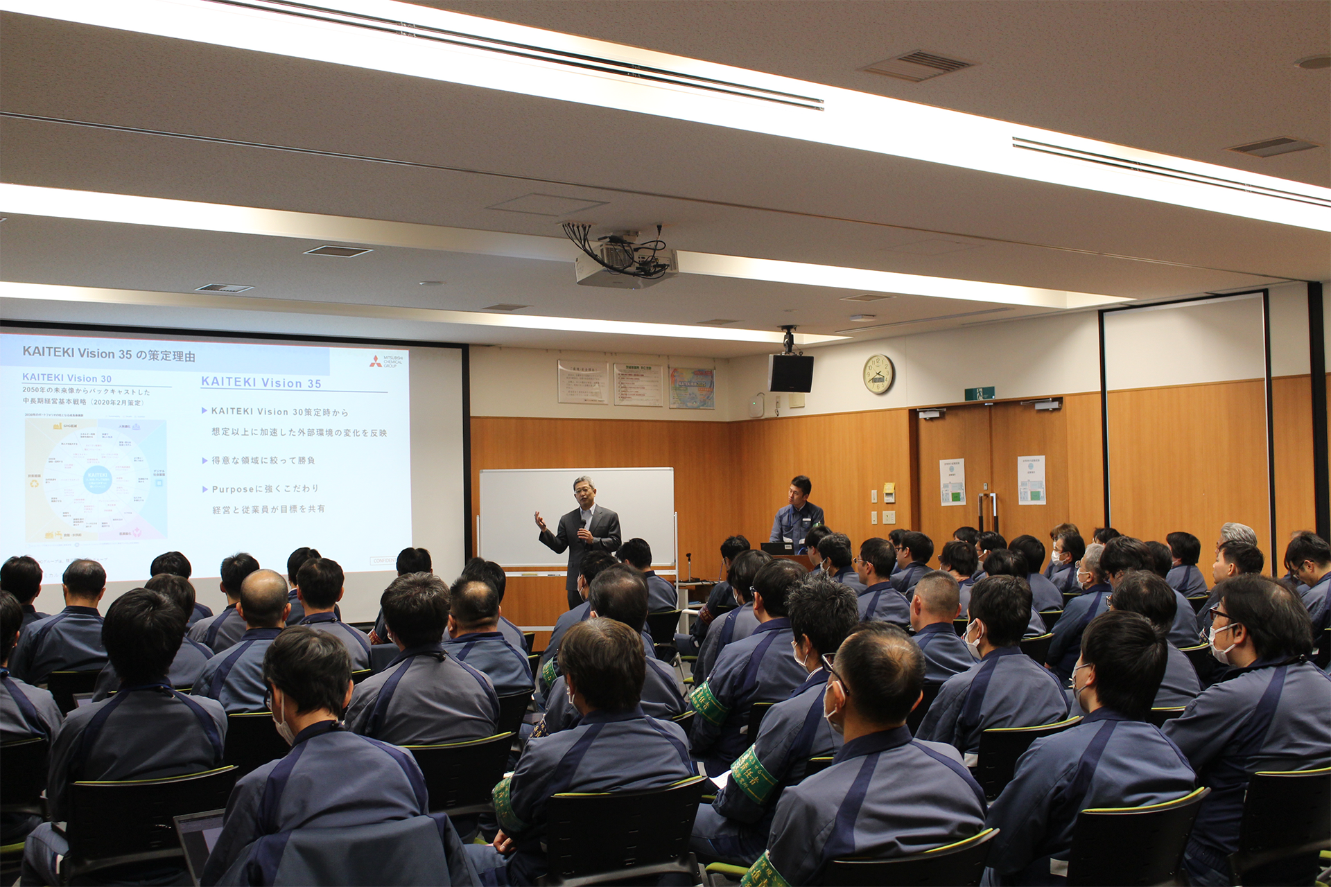 2024年度は、CEOによるタウンホールミーティングや個別対話会を、本社、国内事業所、関係会社、海外拠点において合計44回実施しました。KV35や中期経営計画2029について直接説明を行い、率直な意見交換を通じて理解の浸透を図っています。