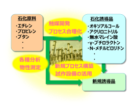 神栖市に拠点を置く当研究室は、ナフサクラッカーを出発とする石化プラント群の操業支援と競争力強化、CN・CE対応を実施しています。