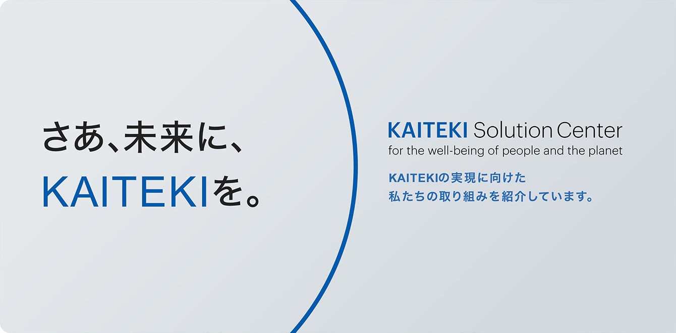 三菱ケミカルグループのPurposeは「革新的なソリューションで、人、社会、そして地球の心地よさが続いていくKAITEKIの実現をリードしていくこと」です。